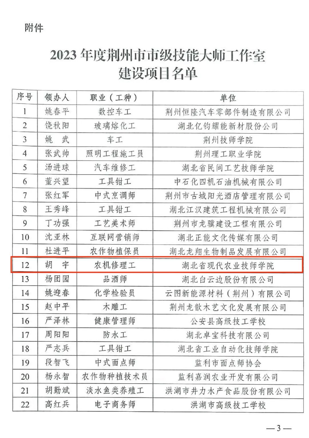 德技双馨 匠心筑农 ——湖北省现代农业技师学院简介 一、基本情况 湖北省现代农业技师学院(江陵县职业教育中心、江陵县实验高级中学、湖北省农业广播电视学校江陵分校、江陵县劳动就业训练中心、荆州市广播电视大学江陵分... 【更多】